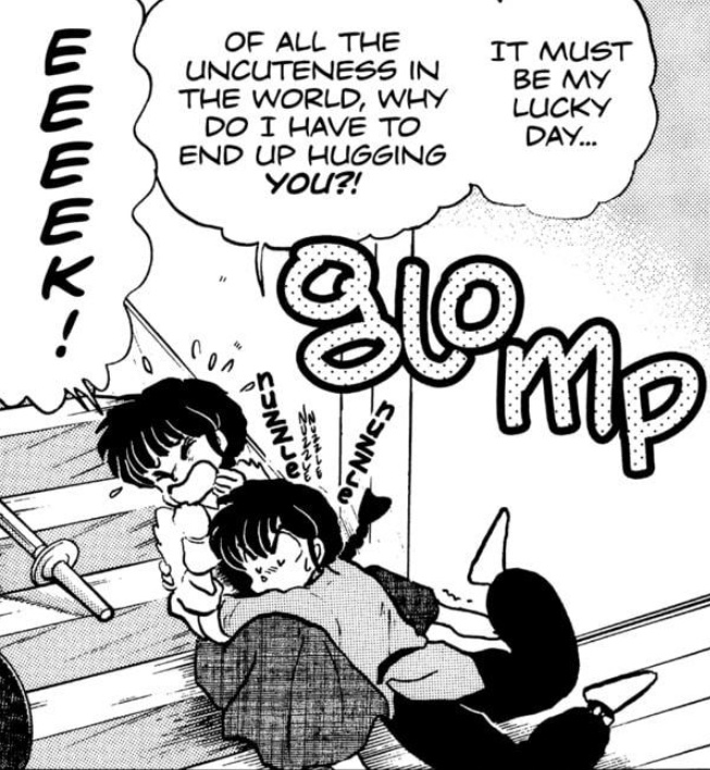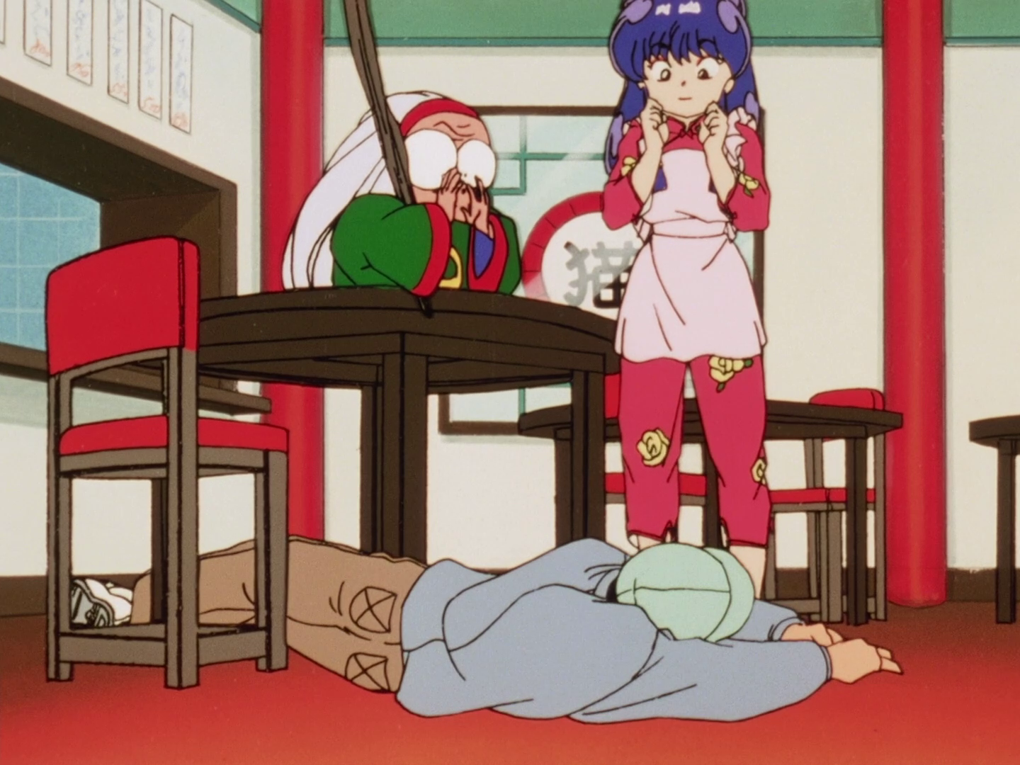 The anime's only saving grace is the adorable Rankane hug when the atmosphere turns romantic. However, they could have easily achieved this same effect by having them blush and stare at each other when they realize they're home alone after ridding themselves of Shampoo. Rewriting the entire episode was unnecessary and disrespectful to the source material and its author. When you have the source material, USE IT!! It's popular for a reason.