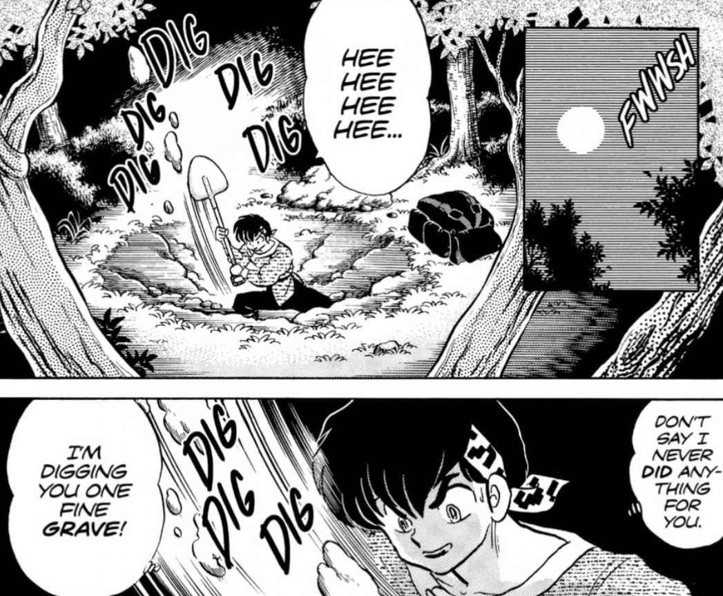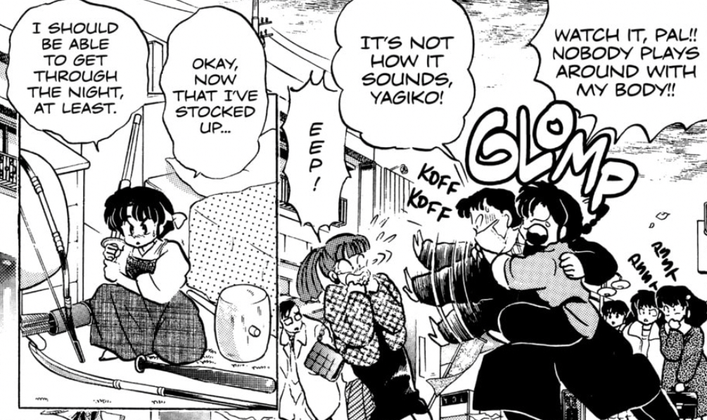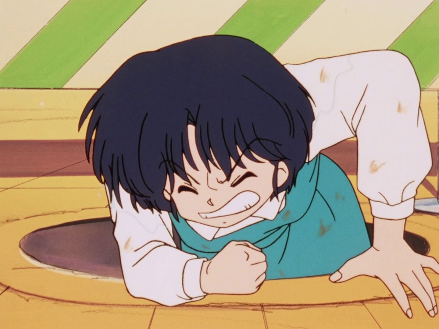 And if they wanted a gag where someone falls into a manhole, why not have it be Ranma, Ryoga, or Shampoo? It would be in character for all of them, given their curses.