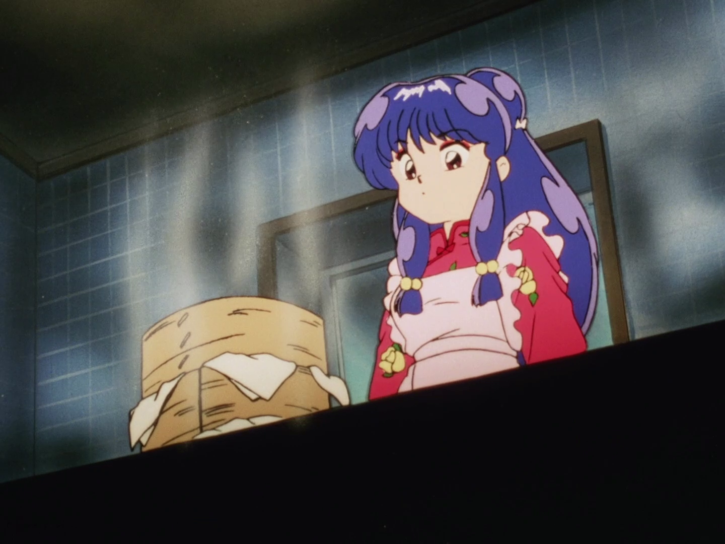 ANIME: After Akane witnesses Ranma and Shampoo hugging, she goes to the movies with her friends. There, she proceeds to be pissed off and rude in the theater, making everyone uncomfortable and mad. On the way home, she’s so angry and distracted that she walks into an open manhole and catches a cold. Yes, you read that right. Meanwhile, Shampoo accompanies Ranma home and tells him the truth about the kairashi.