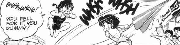 Besides, when you get right down to it, most of the trouble they find themselves in, is because Ranma refuses to man-up and make a decision. Sure, he might not be completely at fault for the fiancee-mess, but he's definitely not bending over backwards to get rid of them either (just look at his fight with Mousse, when "losing" would have rid him of Shampoo; or the reversal jewel chapter, where his egotism really shines).