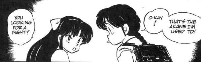 Plus, if it bothered Ranma so much, why is he constantly going out of his way to make her mad? There are plenty of times where he's shown deliberately picking a fight with her.