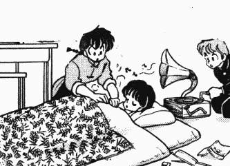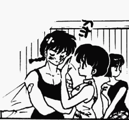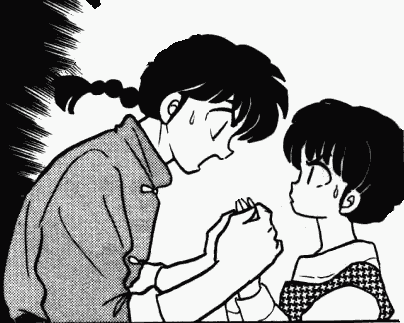 Despite being in a relationship they outwardly protest, Ranma and Akane are very supportive of one another. Whether it's patching each other up after a fight, sacrificing a chance at a cure to come to the other's rescue, or eating toxic cooking just so the other won't be sad. Even when they're sad and depressed, they have each other's backs - be it due to moving, struggling to learn a new tehnique, or having trouble against a strong opponent - they always worry about the other, and go out of their way to try and cheer them up.