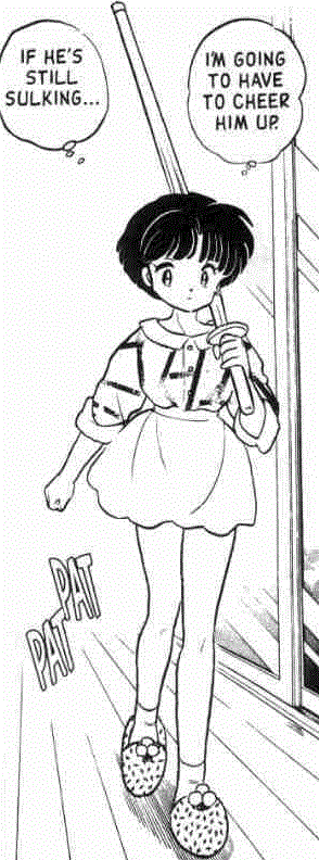 There are entire story arcs that begin with a simple desire to support the other. Ranma joins the cheerleading competition because he's angry that Akane's opponents made her cry. Akane supports Ranma during his hiryu-shoten-ha training by helping him bring out the "fire" he desperately needs, and again, when she sees his moxibustion chart get swept up in his tornado-attack.